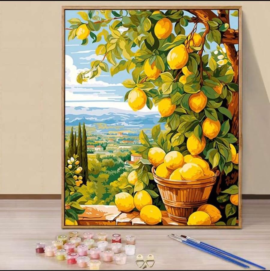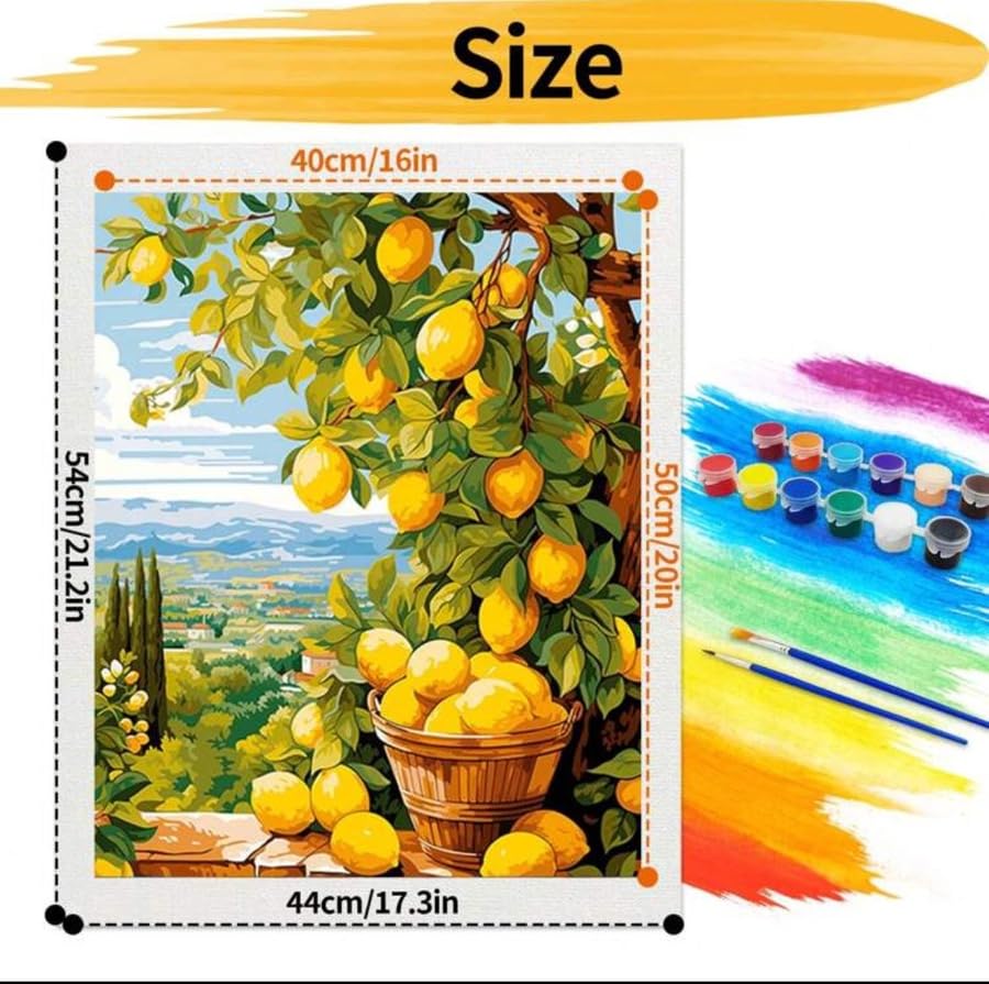 Generic - مجموعة رسم بالأرقام، لوحة فنية قماشية لمنظر طبيعي لحديقة الليمون يمكنك صنعها بنفسك مع فرش وطلاء اكريليك، 40 × 50 سم