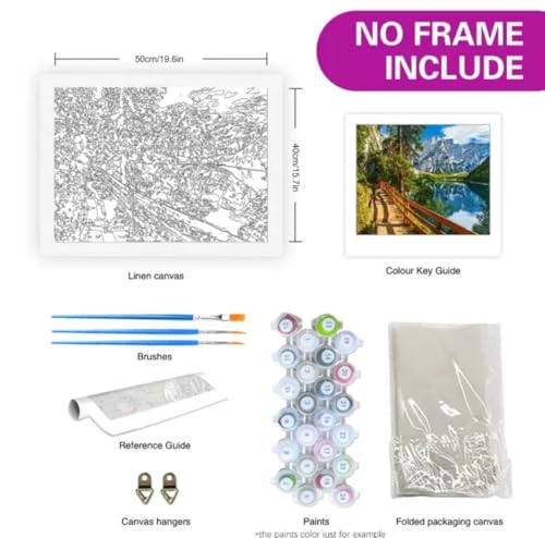 - حجم القماش: قماش ممتاز 40 × 50 سم (16 × 20 بوصة) يوفر مساحة واسعة لإنشاء عمل فني مذهل للمناظر الطبيعية للبحيرة الجبلية