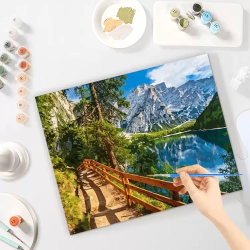Generic - مجموعة رسم بالارقام، مشهد المناظر الطبيعية للبحيرة الجبلية، قماش 40 × 50 سم، مجموعة رسم اكريليك ذاتية الصنع مع فرش وألوان مرقمة للبالغين