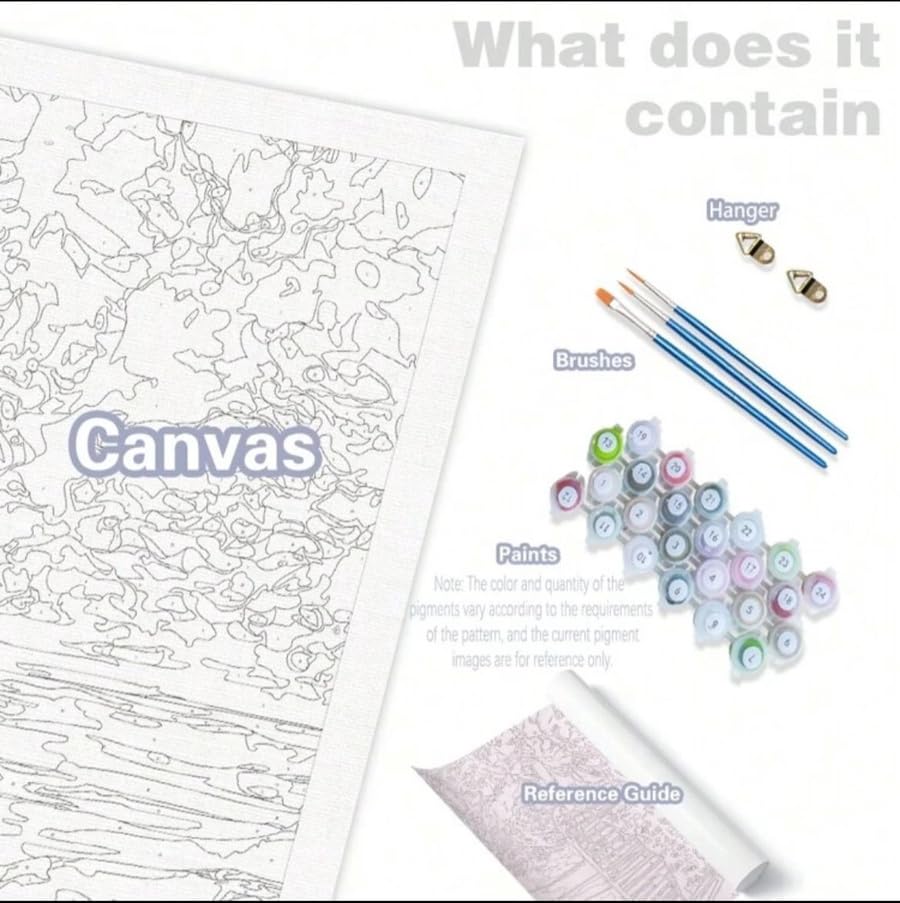 - جودة القماش: قماش عالي الجودة ومطبوع مسبقًا مقاس 40 × 50 سم (16 × 20 بوصة) مع نظام ترقيم واضح لتطبيق الطلاء الدقيق