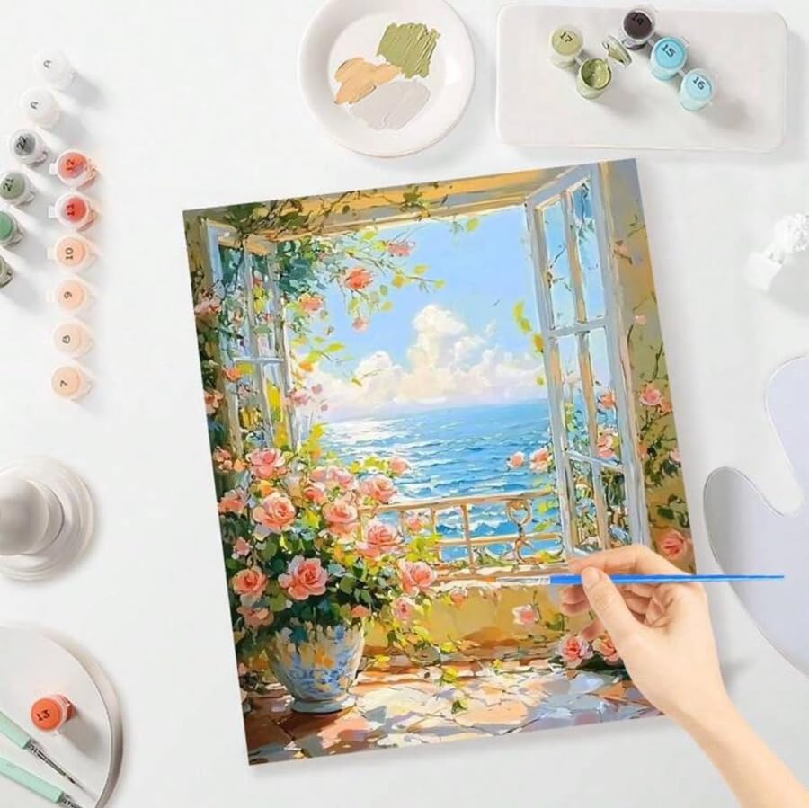 - مجموعة كاملة: تتضمن مجموعة الطلاء الفاخر بالأرقام قماش مطبوع مسبقًا مقاس 40 × 50 سم وطلاء أكريليك وفرش وإكسسوارات معلقة لمشهد مذهل لنافذة المحيط والورد