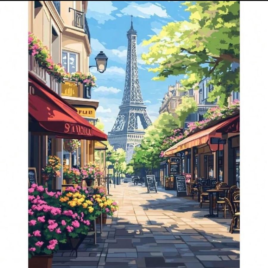 Generic - مجموعة التلوين بالأرقام تتضمن لوحة قماشية مرسوم عليها شارع برج ايفيل بباريس، 40 × 50 سم