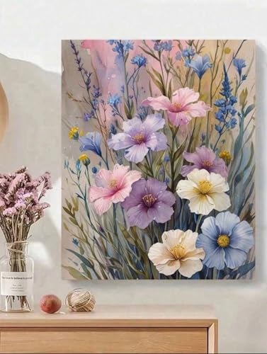 Generic - مجموعة الرسم حسب الارقام، لوحة فنية قماشية بنمط زهور الباستيل البرية، 40 × 50 سم، مجموعة رسم يمكنك تركيبها بنفسك للمبتدئين مع فرش وألوان، ديكور حائط