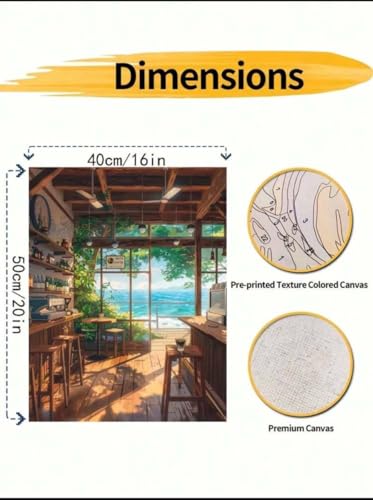 Generic - مجموعة الرسم بالأرقام، مشهد مقهى على شاطئ البحر، قماش 40 × 50 سم، مجموعة فنية كاملة يمكنك صنعها بنفسك مع فرش وألوان