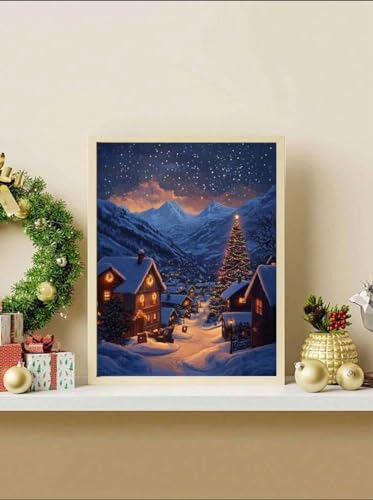 - تصميم مذهل: يتميز بمشهد جبلي شتوي سحري مع منازل قرية مضيئة وشجرة كريسماس وسماء مضاءة بالنجوم مثالية لديكور العطلات