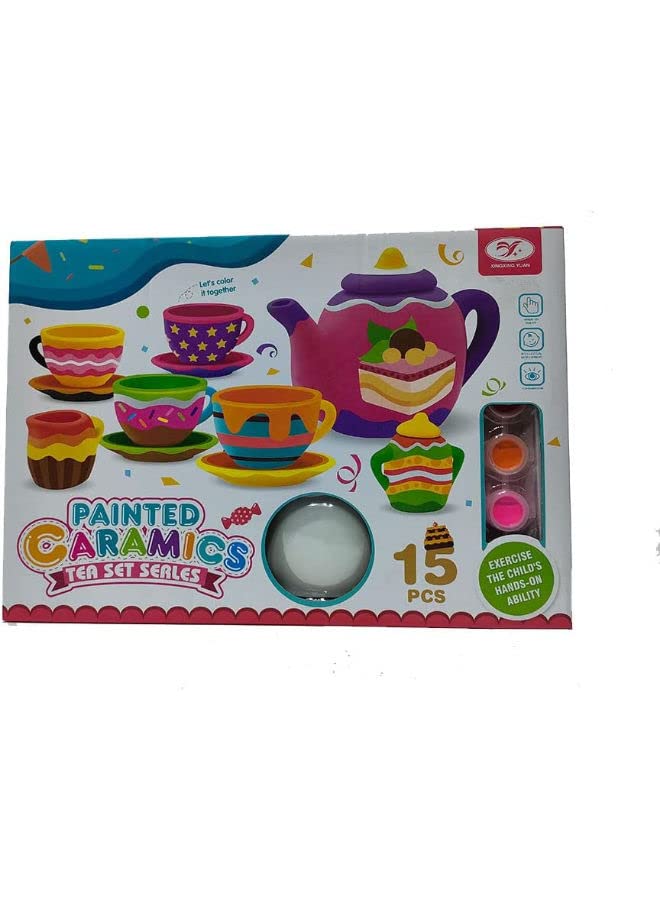 Generic - لعبة طقم أكواب شاي للتلوين عدد 15 قطعة