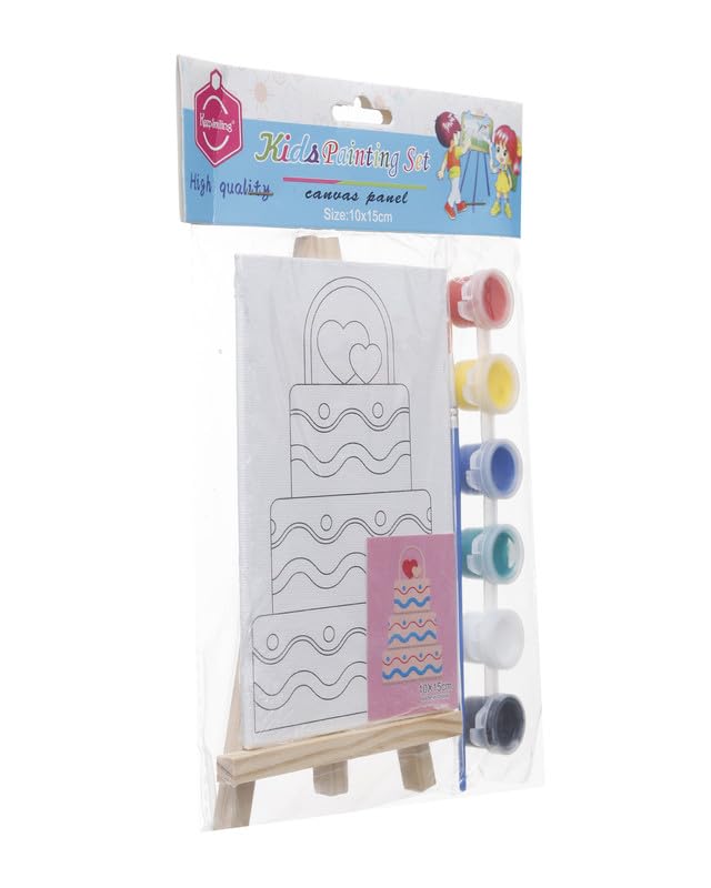 Generic - مجموعة تلوين لوحة قماشية مطبوعة 10*15 سم شكل تورتة على حامل خشبي و6 الوان مائية و فرشاة من ،متعدد الألوان