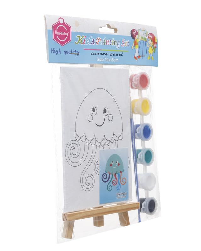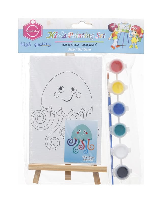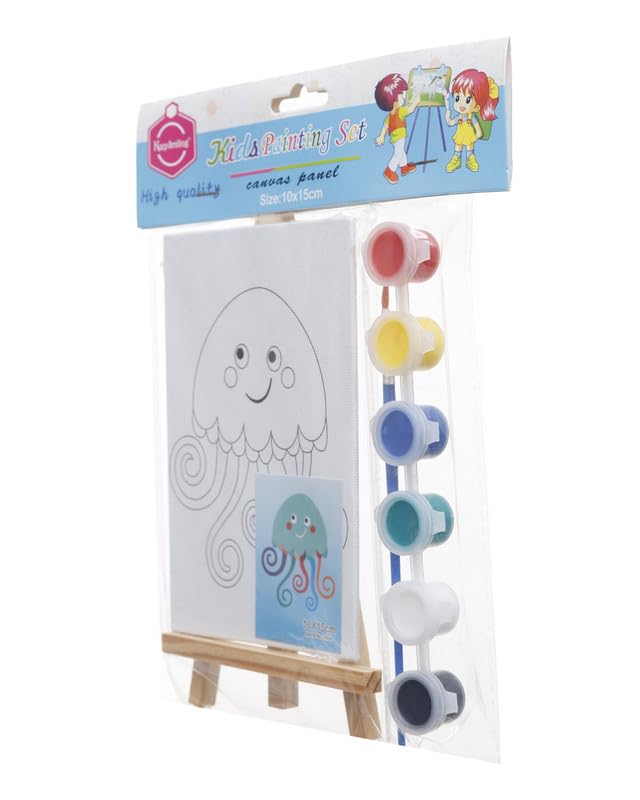 Generic - مجموعة تلوين لوحة قماشية مطبوعة 10*15 سم شكل أخطبوط على حامل خشبي و6 الوان مائية و فرشاة من ،متعدد الألوان