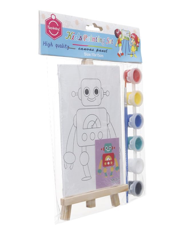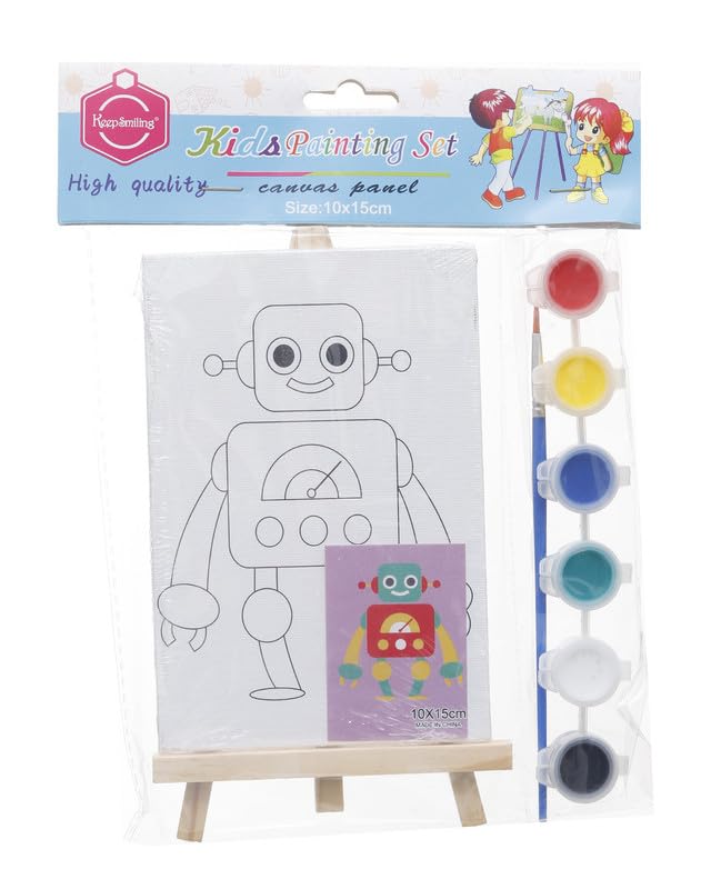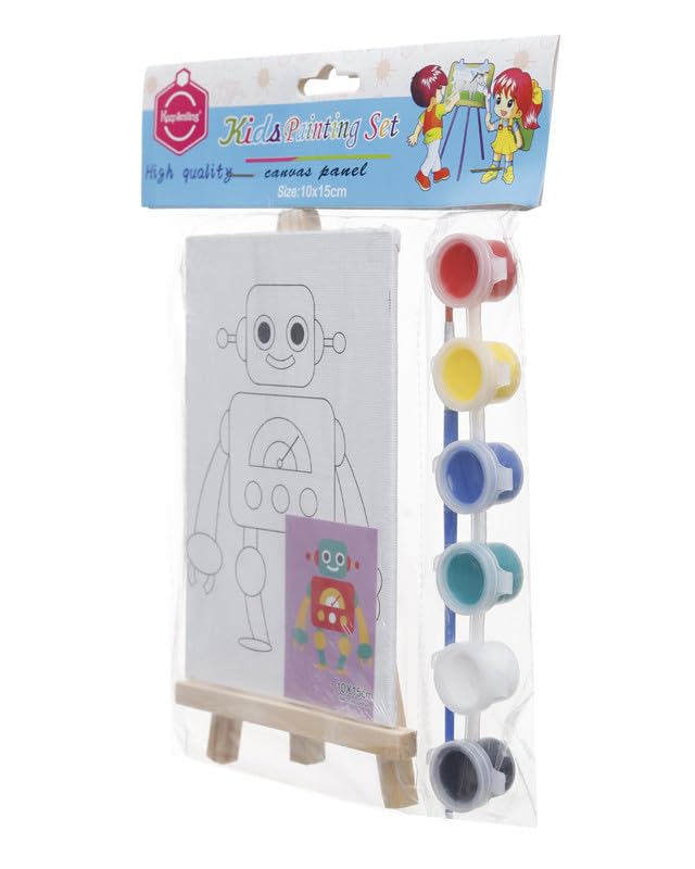 Generic - مجموعة تلوين لوحة قماشية مطبوعة 10*15 سم شكل روبوت على حامل خشبي و6 الوان مائية و فرشاة من ،متعدد الألوان