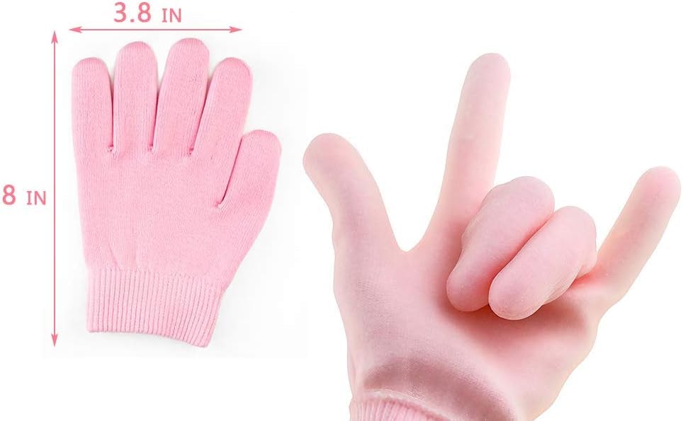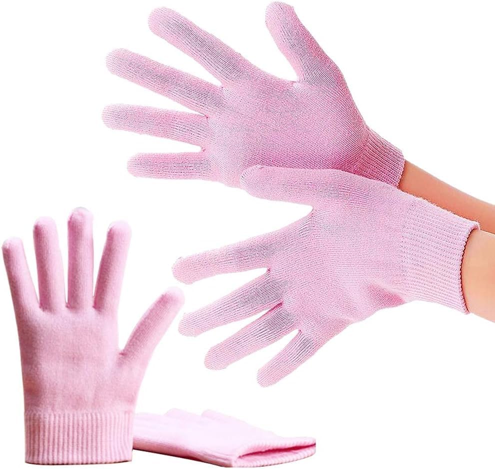 Spaceshoop - زوج قفازات جل سبا مرطبة لعلاج اليدين الجافة، قفازات لوشن اليد القطنية، قفازات ترطيب ليلية، قفازات سيليكون لتنعيم البشرة الجافة والمتشققة (وردي)