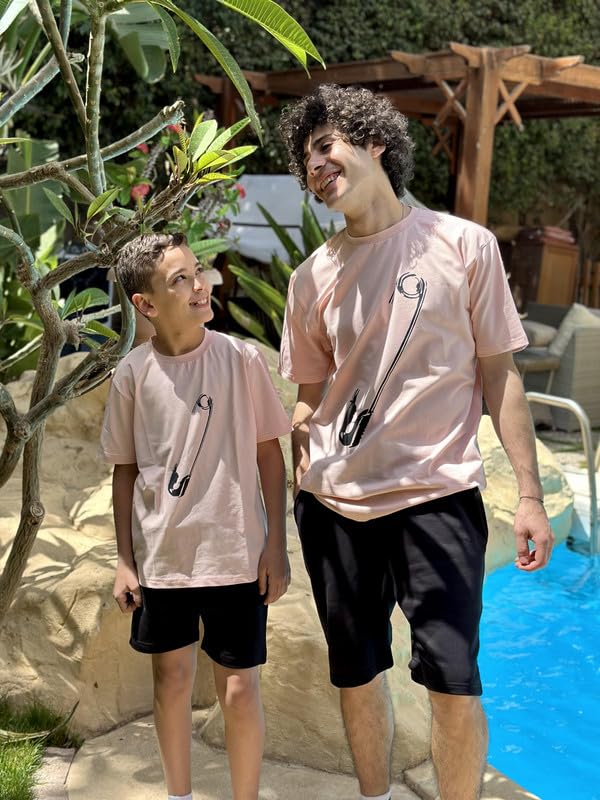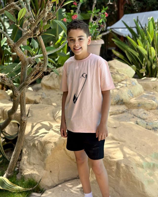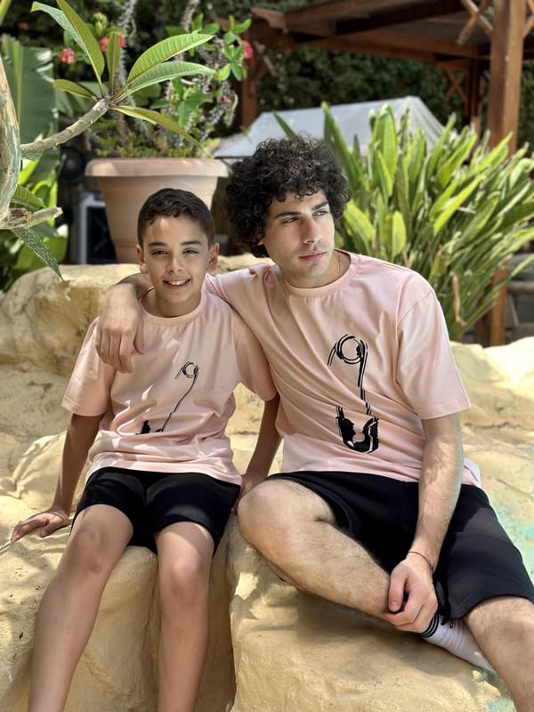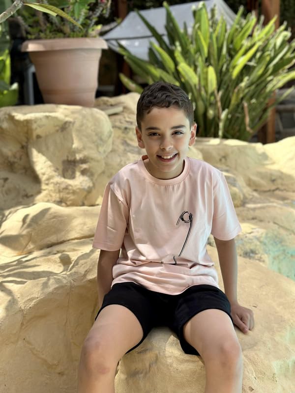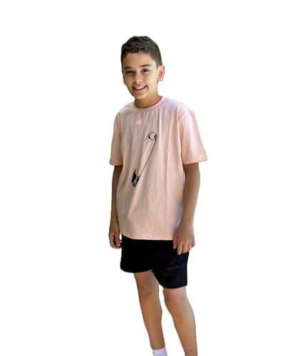 Paj - طقم رياضي للأولاد من تيشرت قطن مطبوع بلون خوخي وشورت ميلتون صيفي بلون أسود، ملابس منزلية مريحة من القطن من بي ايه جيه