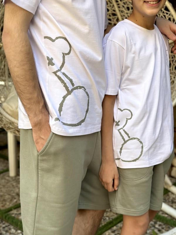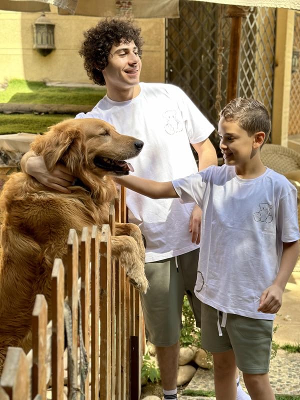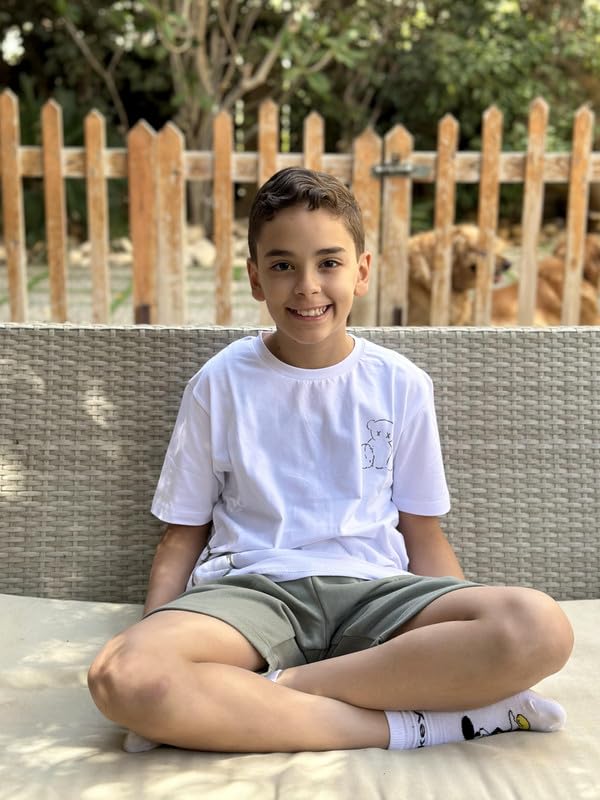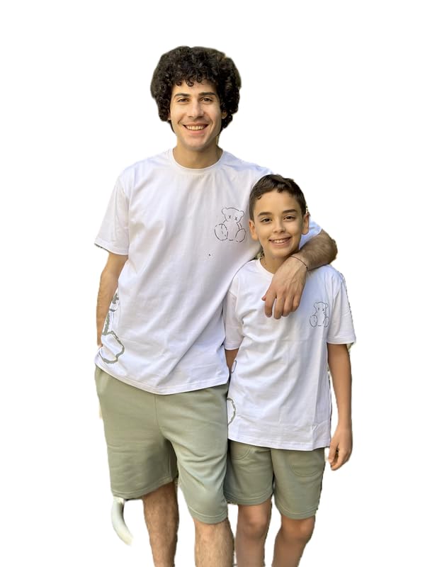 Paj - طقم رياضي للأولاد من القطن مطبوع مكون من تيشرت أبيض وشورت ميلتون صيفي مريح من القطن مناسب للارتداء في المنزل من بي إيه جيه