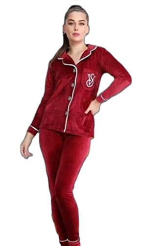Generic - طقم شتوي بنطلون بيجامة للنساء - قطعتان - بورجندي