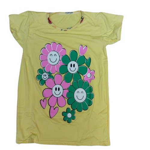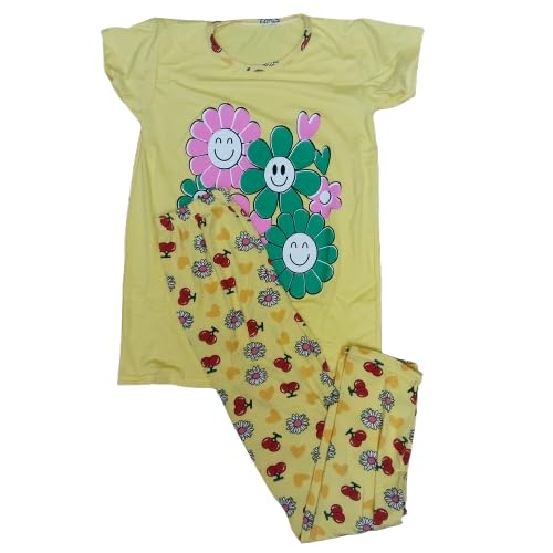 Generic - طقم بيجامة بناتي، قطن ١٠٠٪ لنطالون و تيشرت نصف كم - لون أصفر ، مقاس ١٤ - موديل رقم #: 550-911