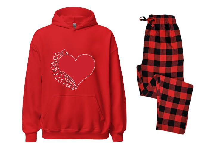 Generic - طقم بيجامة بغطاء رأس احمر بتصميم قلب وبنطلون كاروهات مقاس (2XL)