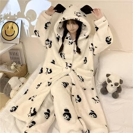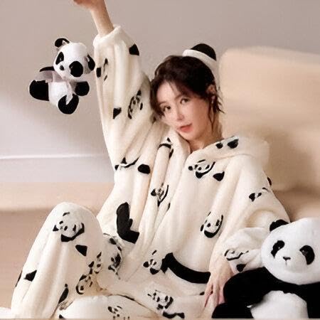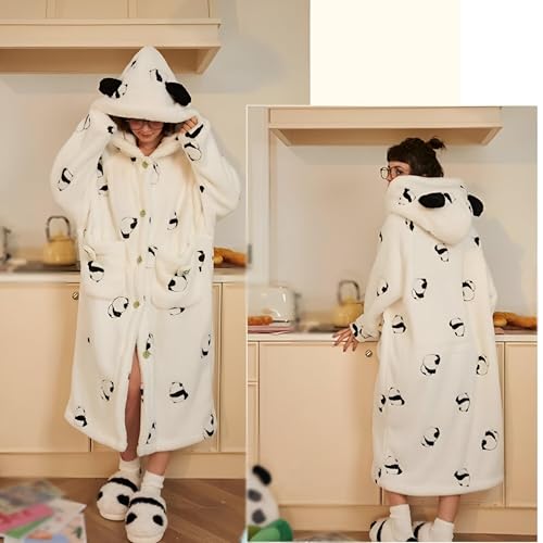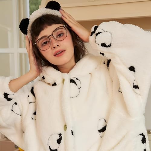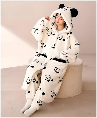 Generic - بيجامة - ملابس نوم مريحة من الصوف المرجاني بتصميم باندا مع قماش سميك وجيوب واسعة للاسترخاء المنزلي المريح