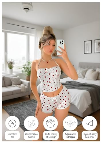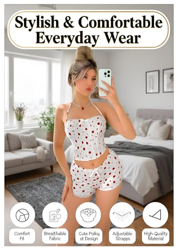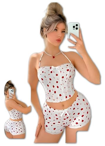 Generic - طقم بيجامة - طقم ملابس نوم فليرتي مزين بالزهور مكون من بلوزة نصف بطن وسروال قصير مثير، تصميم أنيق ومريح