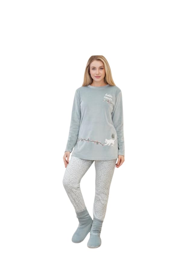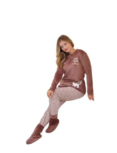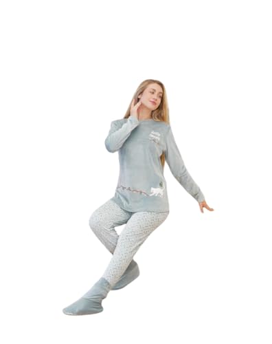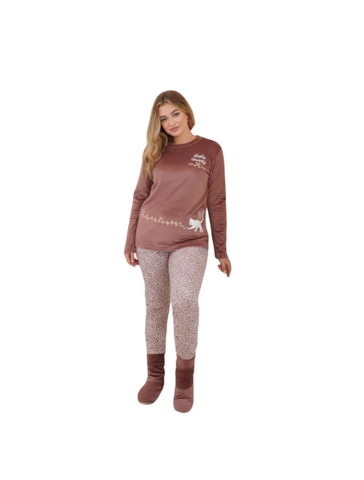 Generic - بيجامة شتوي قطيفة فرو تيشيرت بتصميم رقيق و بنطلون منقوش + لكلوك للنساء ( بألوان متعددة )
