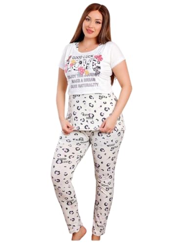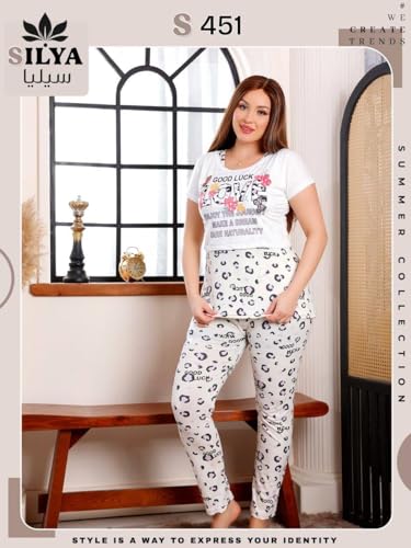 Generic - بيجامة حريمي صيفي قطن ثلاثه قطع – تيشيرت بطبعة فراشة وبنطلون ليوبارد – مريحة وناعمة للبيت والنوم – تصميم عصري تلبيس حتى 85 كيلو