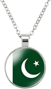 Generic - قلادة علم باكستان، تصميم العلم الوطني ثلاثي الالوان، قلادة معدنية فضية، تذكار مشجعي فريق كرة القدم