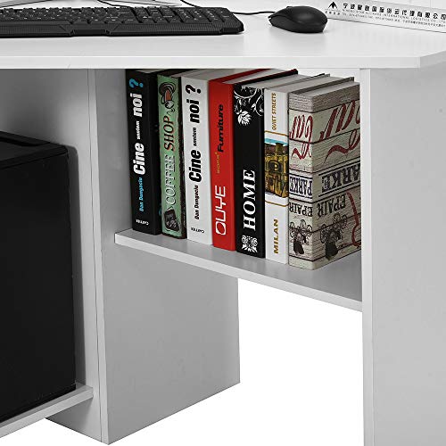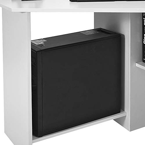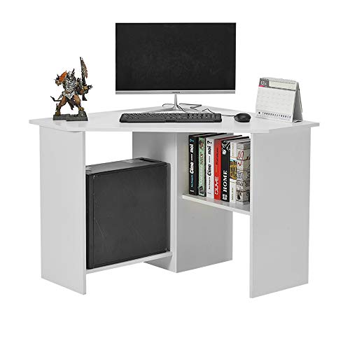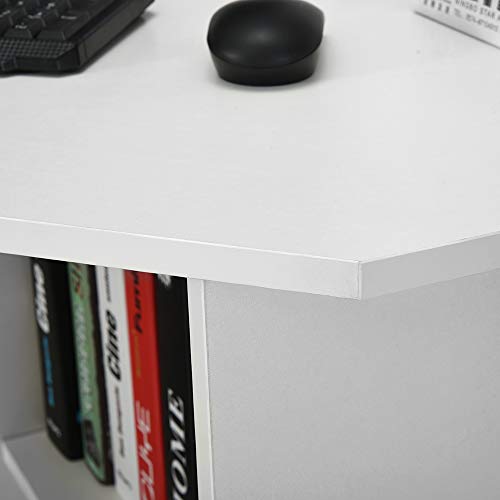 PALDIN - مكتب زاوية منزلي من بالدين على شكل حرف L عمل للكمبيوتر واللاب توب ألعاب للمنزل والمكتب مساحة صغيرة مع رفوف مقاس عرض 90 × عمق ارتفاع 74 سم أبيض