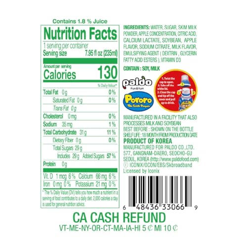 - مشروب بنكهة التفاح بورورو من بالدو، 235 مل - صنع في كوريا