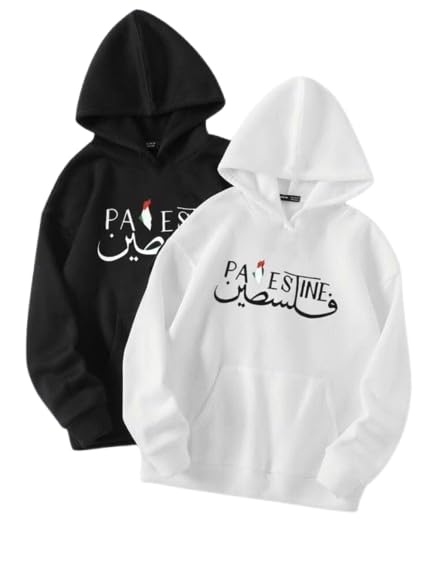 Generic - سويت شيرت شتوي قطني للجنسين، تصميم فلسطين،لون أبيض، مقاس XL