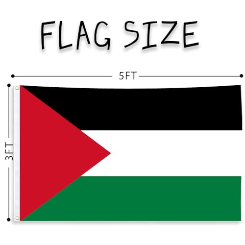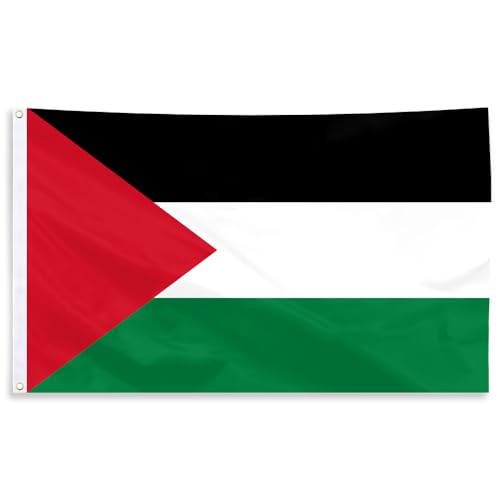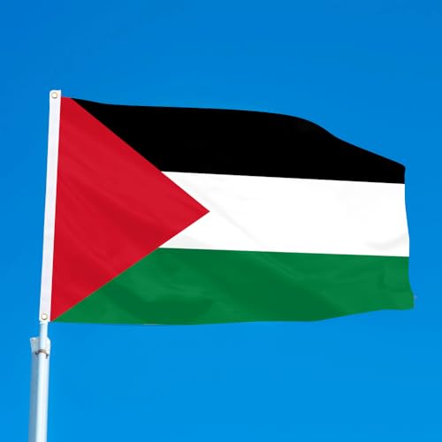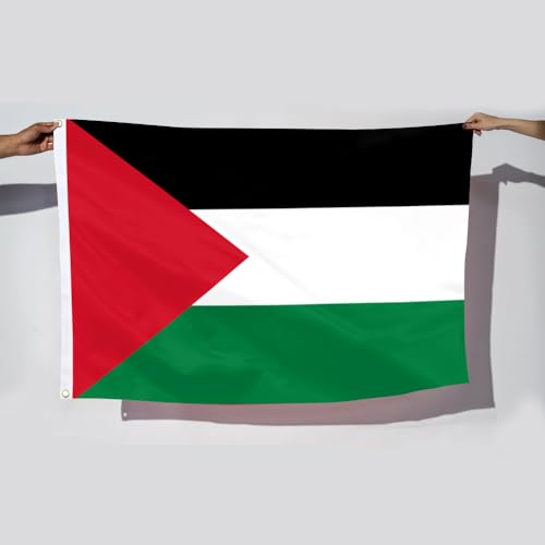 GEPAS - علم فلسطين - لافتة وطنية فلسطينية كبيرة مزودة بفتحتين معدنيتين من النحاس الأصفر بألوان زاهية مناسبة للزينة الداخلية والخارجية في الحدائق والمنازل والساحات وغرف النوم، مقاس 91 سم × 1.52 متر