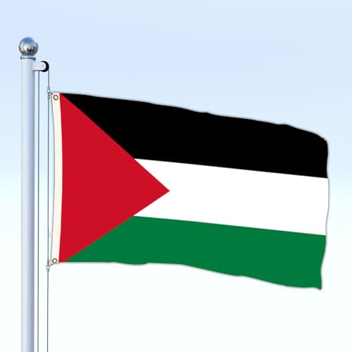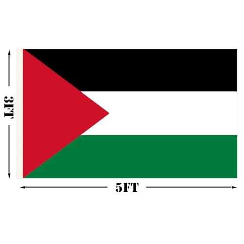 wuqu-star - علم فلسطين الوطني 3 × 5 قدم قماش بوليستر بخياطة مزدوجة مع حلقتين للديكور الخارجي