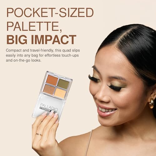 - مواصفات المنتج: تأتي مجموعة ظلال العيون الرباعية الجديدة ذات الملمس الناعم في 8 درجات خالية من التلك وقابلة للمزج من بالاديو. صُممت كل باليت صغيرة بألوان وجو خاص بها في مزيج من اللمسات النهائية بطبقة خارجية لامعة وغير لامعة. هذه الظلال النباتية غنية بالشاي الأخضر وفيتامين هـ وهي الإضافة المثالية لمجموعة المكياج الخاصة بك.