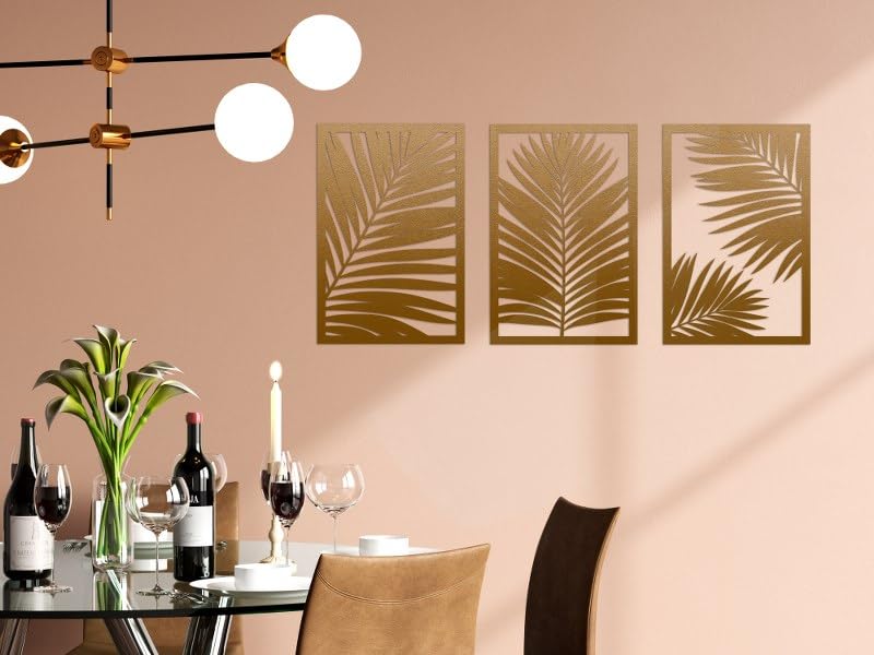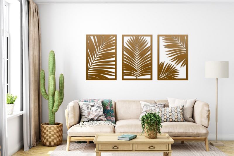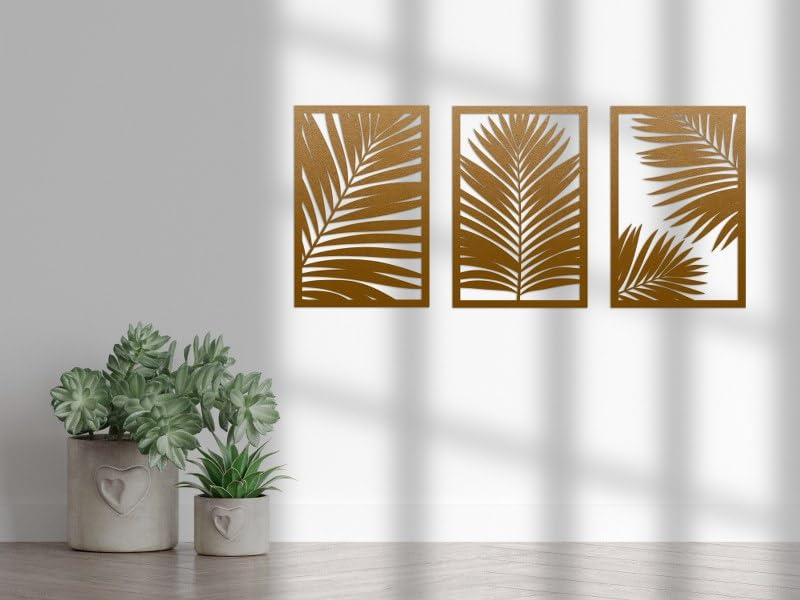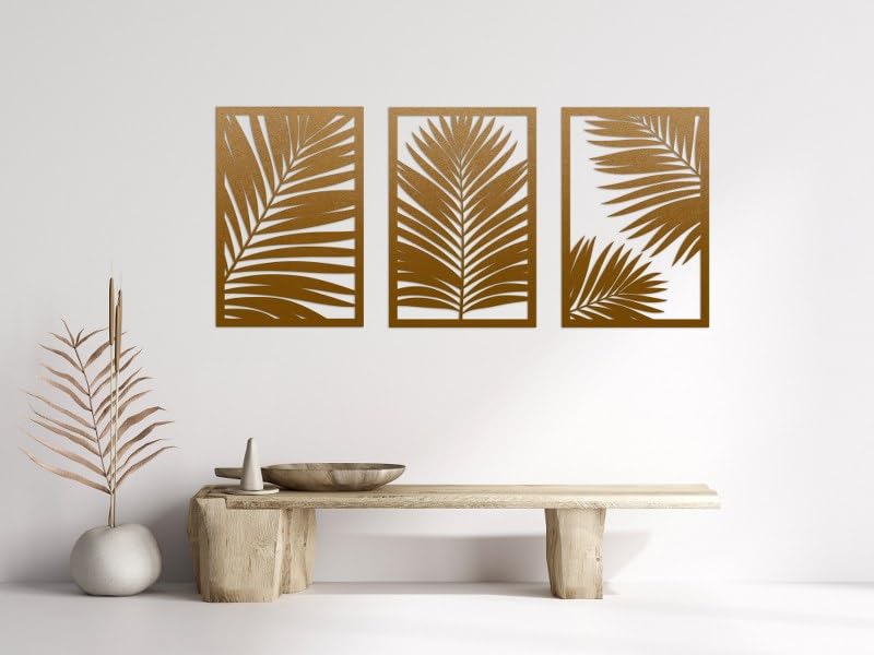 Home Gallery - لوحة فنية جدارية خشبية ثلاثية بتصميم أوراق النخيل