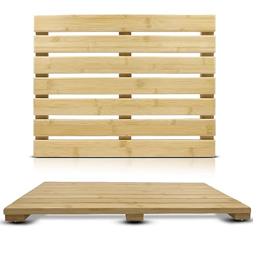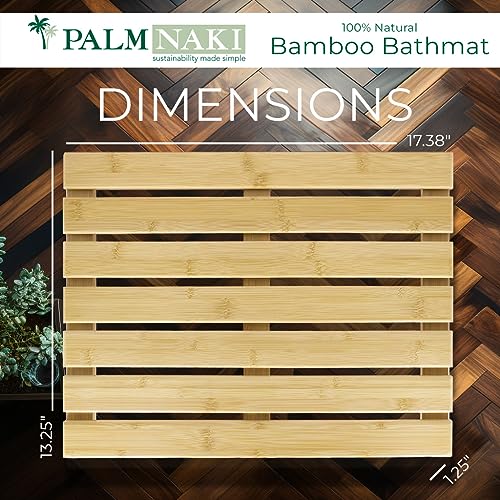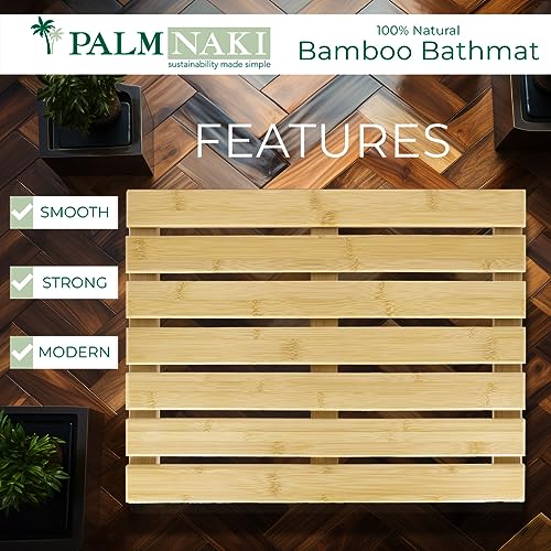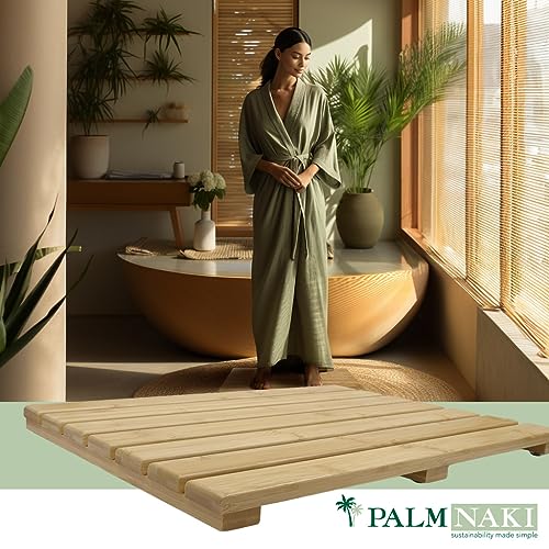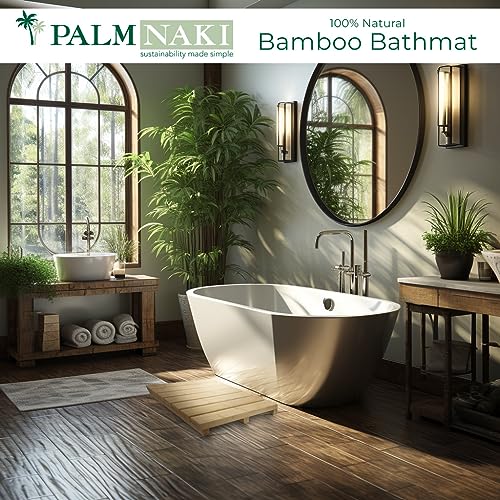 PALM NAKI - دواسة أرضية حمام من الخيزران الطبيعي بنسبة 100% غير قابلة للانزلاق ومستدامة وصديقة للبيئة بتصميم آسيوي عصري للحمام والمنتجعات الصحية من بالم ناكي (43×33 سم)