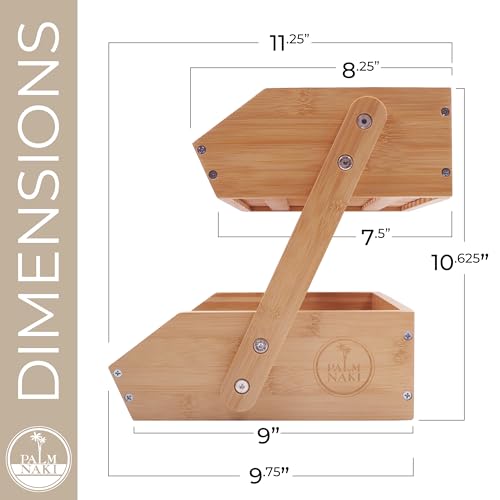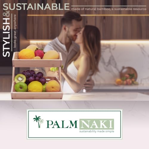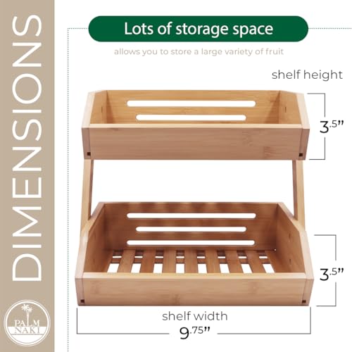 PALM NAKI - بالم ناكي سلة فاكهة من الخيزران بطبقتين - تصميم حامل فاكهة قوي وجذاب وموفر للمساحة، سهل التجميع، دوران هواء محسن، تخزين الفاكهة (خيزران طبيعي)