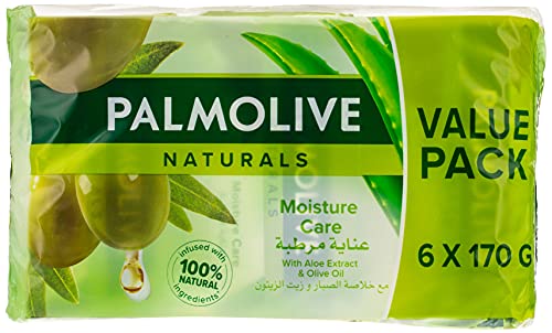 Palmolive - صابونة ناعمة ومرطبة بزيت صبار الالوفيرا من بالموليف ناتشورالز، 70 جرام، 6 قطع