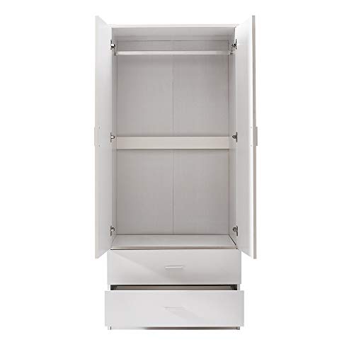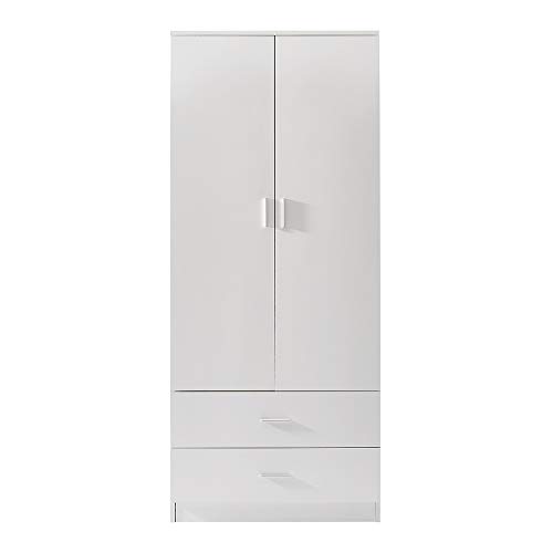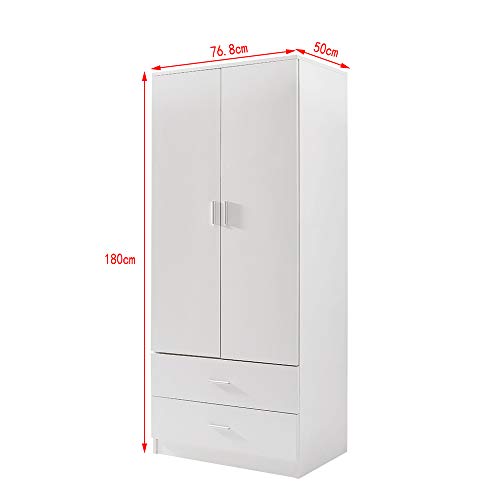 Panana - دولاب مكون من بابين ودرجين برف وبار للتعليق، وحدة خشبية لتخزين الملابس، أثاث غرفة النوم من بانانا، مقاس 76.8 سم × 50 سم × 1.8 م (أبيض)