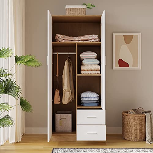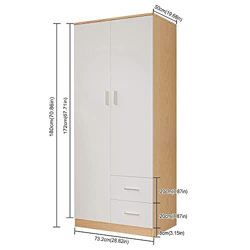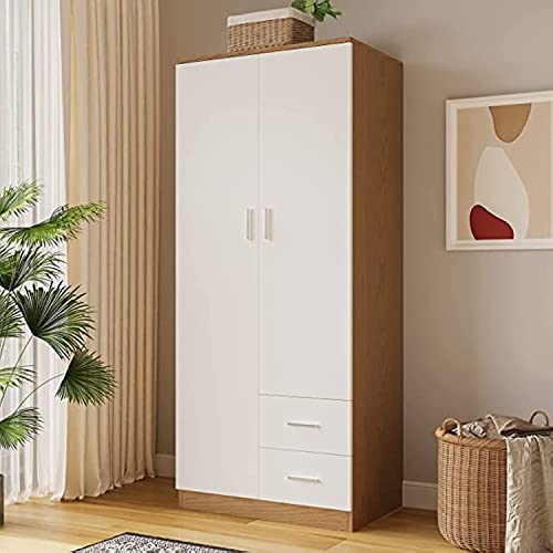 Panana - دولاب 2 درفة و2 درج مزود برف وقضيب لتعليق الملابس من بانانا، وحدة خشبية لتخزين الملابس وأثاث غرف النوم، الأبعاد 77 × 50 × 180 سم (خشب البلوط الأبيض، لون بني)