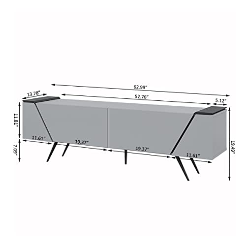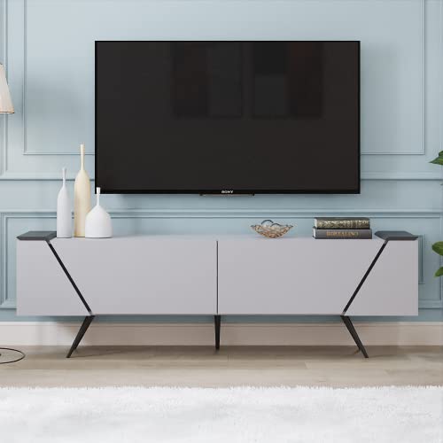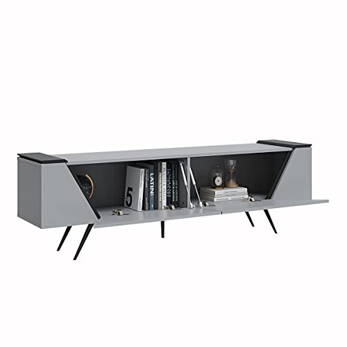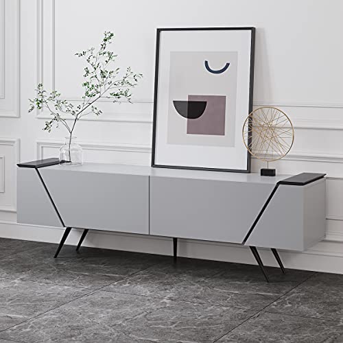 Panana - دولاب جانبي للبوفيه مع بابين لغرفة المعيشة، دولاب تخزين 49.5 سم ارتفاع × 1.60 متر عرض × 35 سم عمق من بانانا اكسنت، خشب مُصنع، رمادي