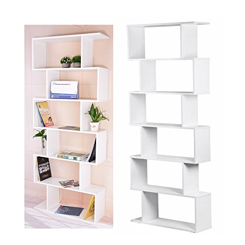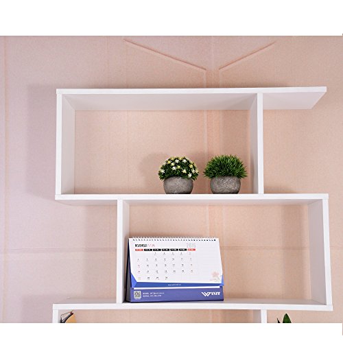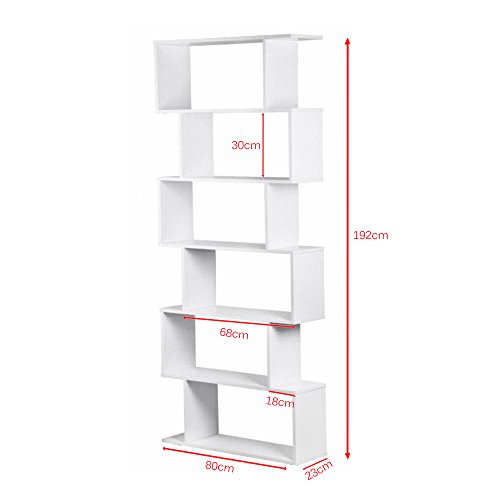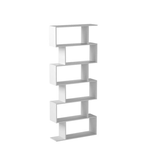 Panana - مكتبة بتصميم سلم من امانتين، مكونة من 6 ارفف، مناسبة للحمام والصالون والحديقة، مقاس: 80× 23× 192 سم؛ وزن: 24 كجم - ابيض، خشب مُصنع