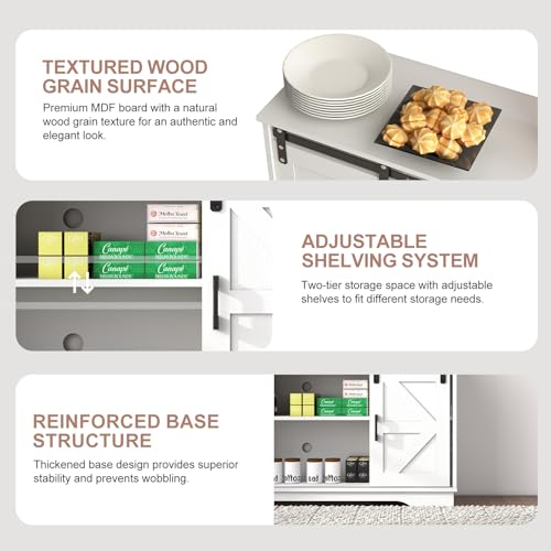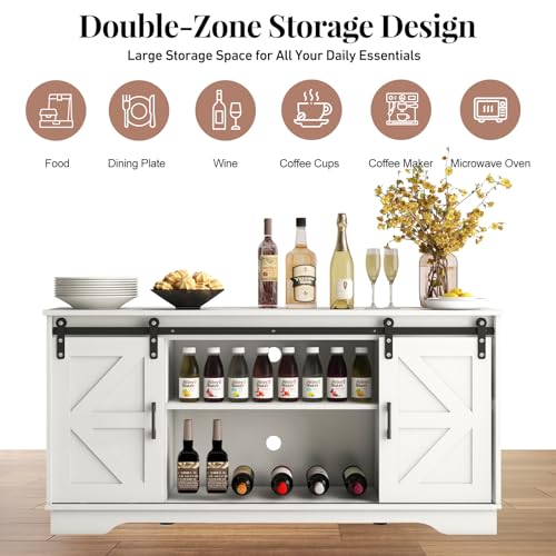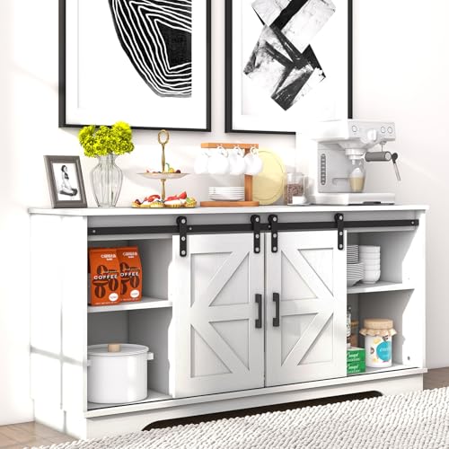 Panana - دولاب بار بتصميم ريفي ببابين منزلقين من بانانا، دولاب تخزين بوفيه بتصميم ريفي وحامل تلفزيون (دولاب تخزين أبيض)، زجاج