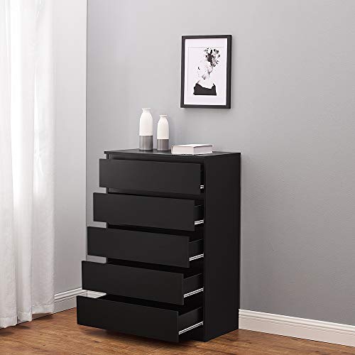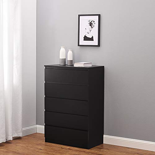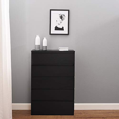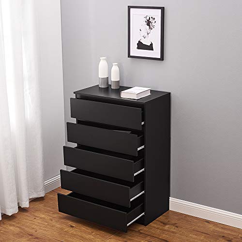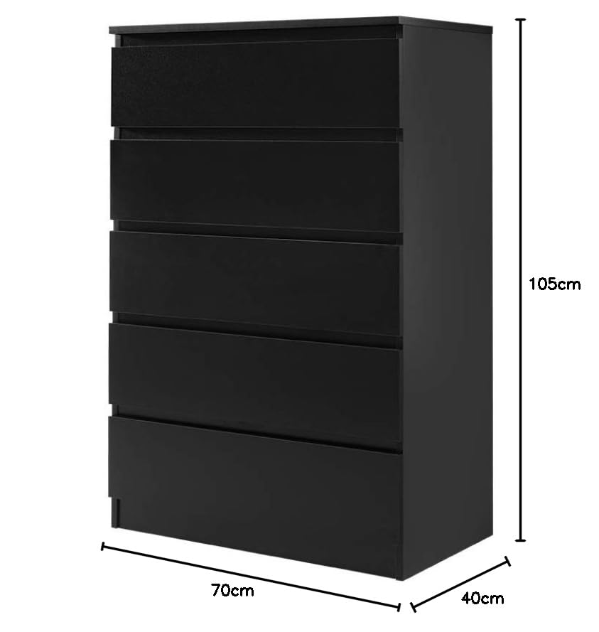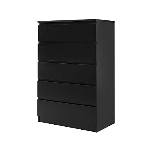 Panana - طاولة سرير بـ 5 ادراج، مناسبة لغرفة المعيشة وغرفة النوم والمكتب، مقاس 70 × 40 × 105 سم، (لون اسود)، خشب