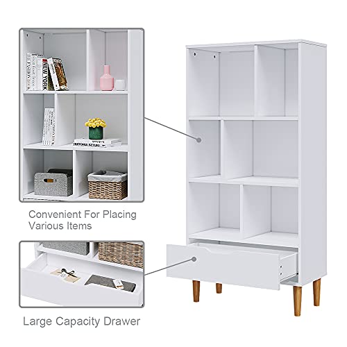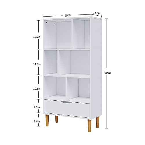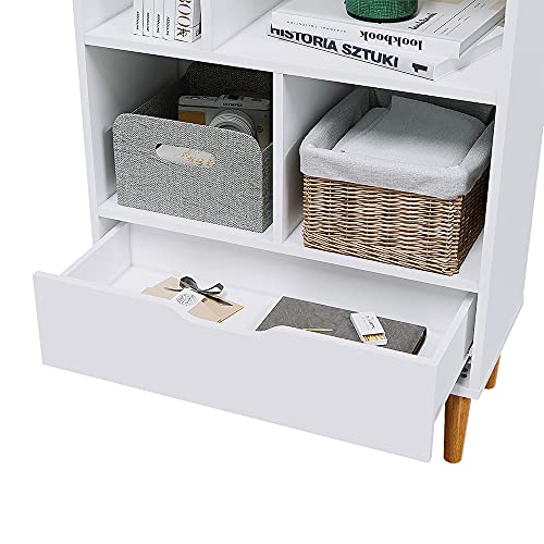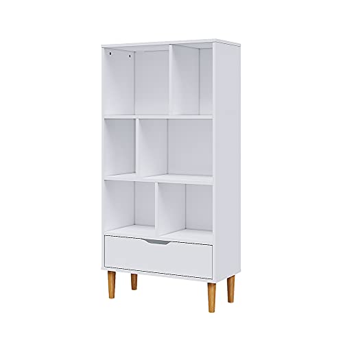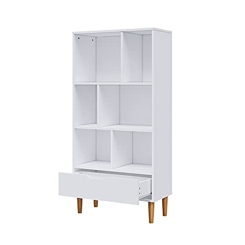 Panana - مكتبة جانبية قائمة بذاتها مكونة من 6 مكعبات تخزين بانانا وحدة رفوف كتب دولاب مع درج وأرجل خشبية لغرفة المعيشة أبيض خشب مُصنع