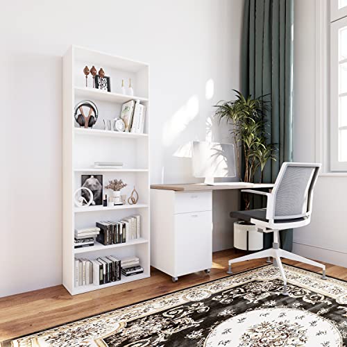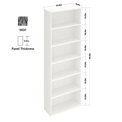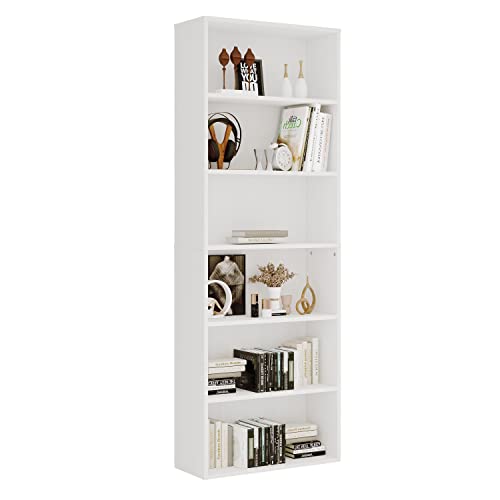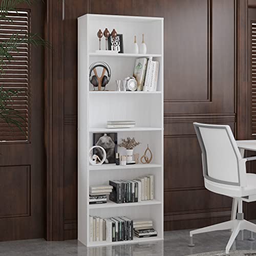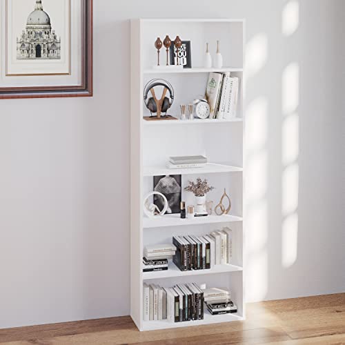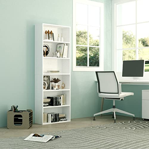 Panana - مكتبة خشب كبيرة من 6/5 طبقات، رفوف مكعبة من الخشب الصلب، منظم عرض وتخزين مستقل للكتب والأغراض، وحدة قائمة بذاتها لغرفة المعيشة أو مكتب المنزل من بانانا (لون أبيض، 6 طبقات)