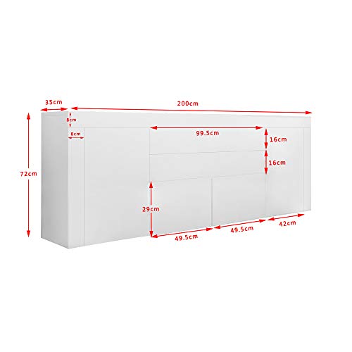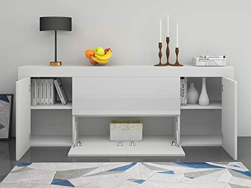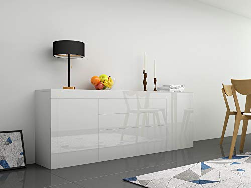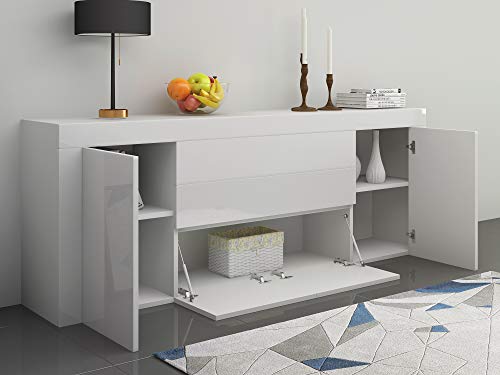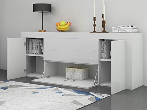 Panana - دولاب جانبي كبير باطراف شديدة اللمعان مع بابين ودرجين وغطاء قلاب للاثاث وغرفة المعيشة والرواق من بنانا (ابيض)، خشب