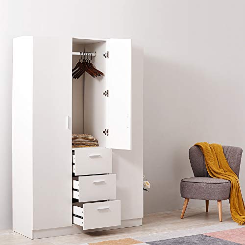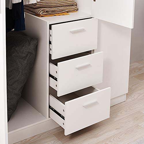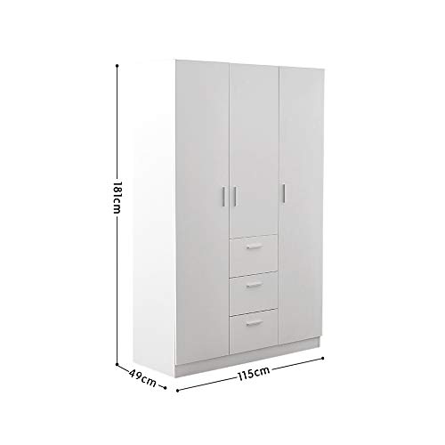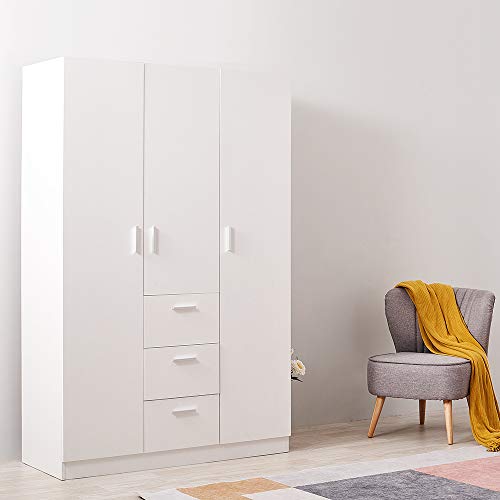 Panana - دولاب ملابس عصري بـ 3 أبواب و3 أدراج مع قضيب تعليق من بانانا، خزانة تخزين ملابس ثلاثية كبيرة - لون أبيض
