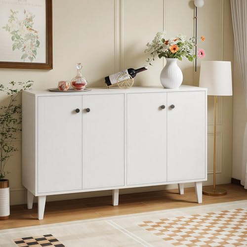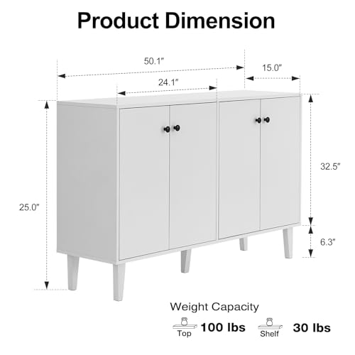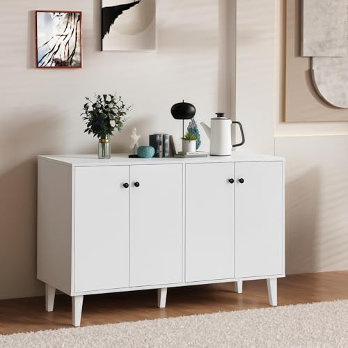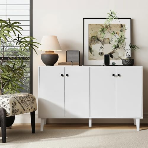 Panana - بانانا خزانة بوفيه جانبية تخزين للمطبخ وغرفة المعيشة طاولة وحدة تحكم بـ4 ابواب ابيض خشب