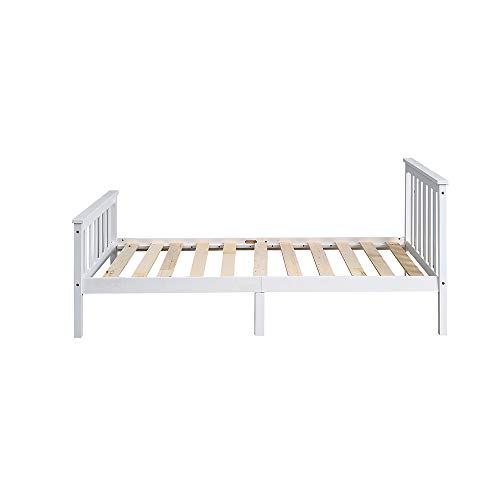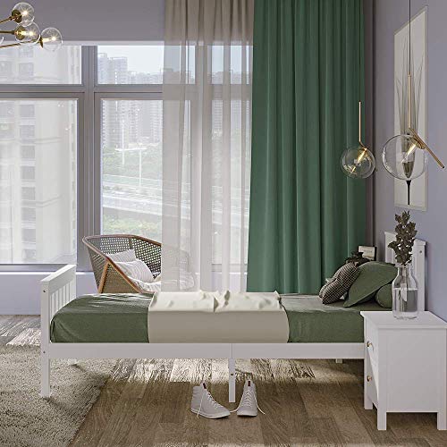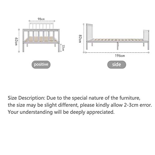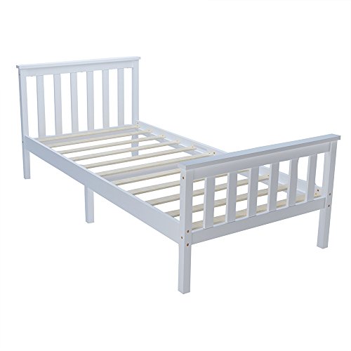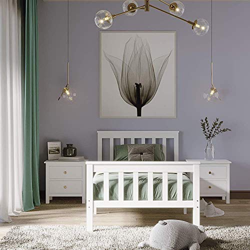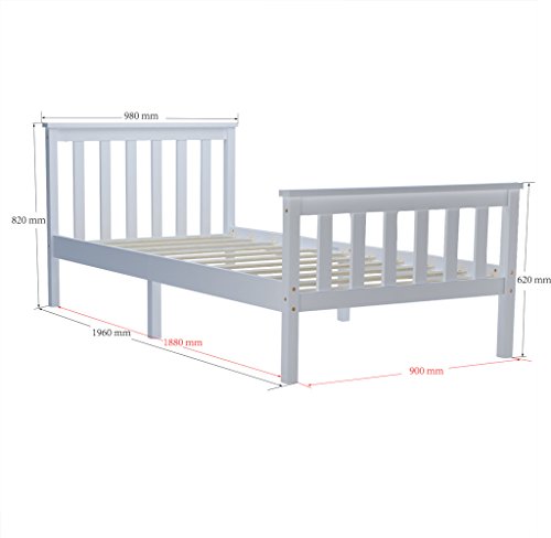 Panana - سرير خشبي مفرد بإطار بلون أبيض للبالغين والأطفال، 91 سم، 90 × 190 سم