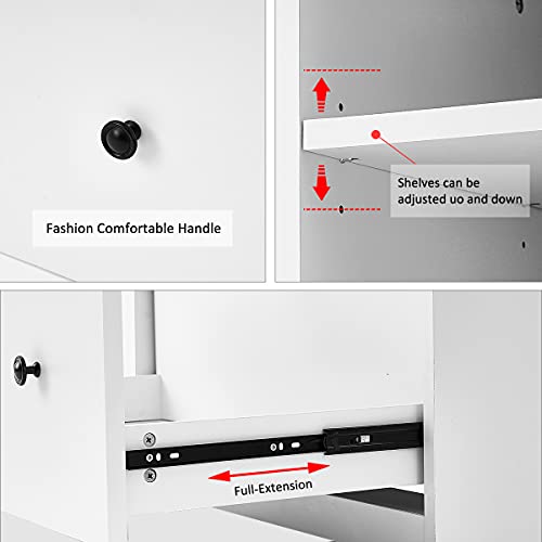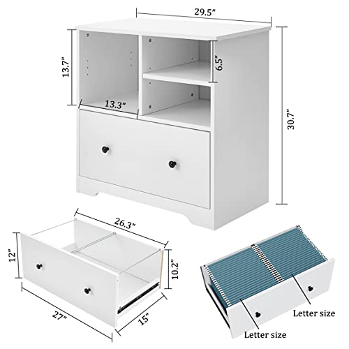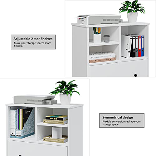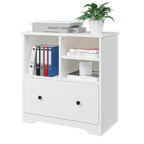 Panana - خزانة ملفات من الخشب مع درج كبير، خزانة ملفات جانبية متحركة لتنظيم خزانة التخزين في المنزل والمكتب (لون أبيض)، من بانانا
