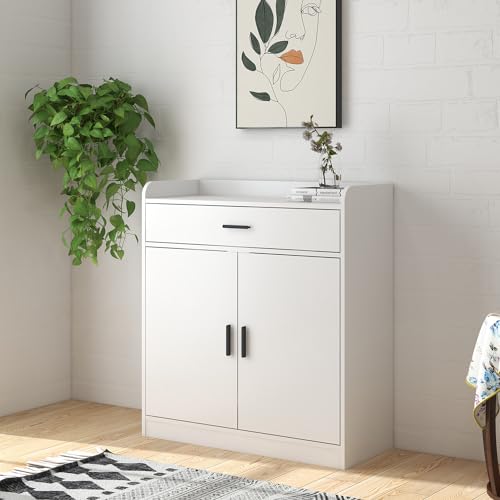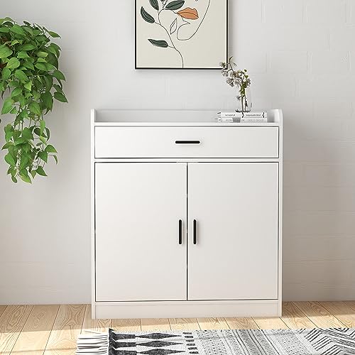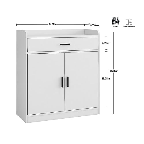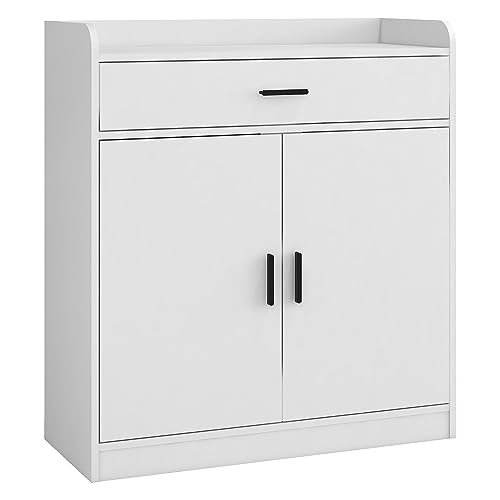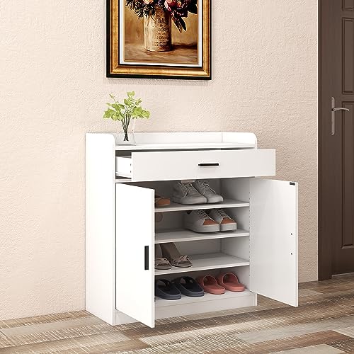 Panana - بانانا خزانة احذية خشبية، 2 باب 1 درج قائم بذاته، رف احذية مخفي على الحائط، خزانة تخزين في الرواق، وحدة خزانة جانبية لتنظيم الاحذية (ابيض)