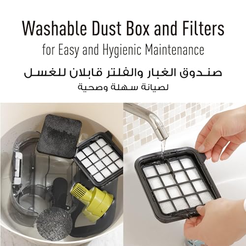 - فلتر قابل للغسل وصندوق غبار