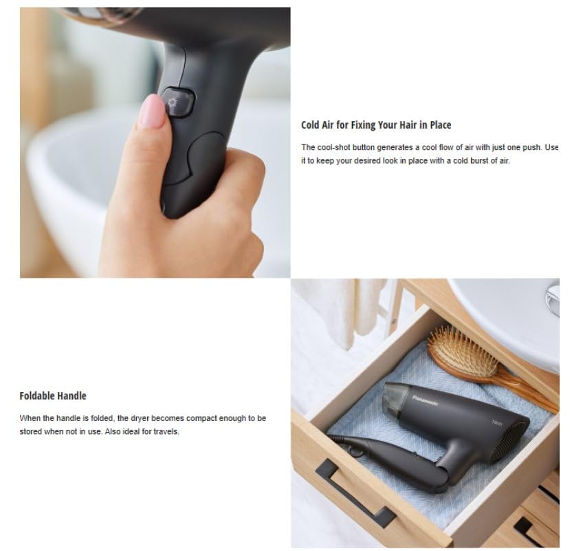 Panasonic - مجفف شعر سريع بقدرة 1800 واط من سلسلة EH-ND37-K باناسونيك أسود
